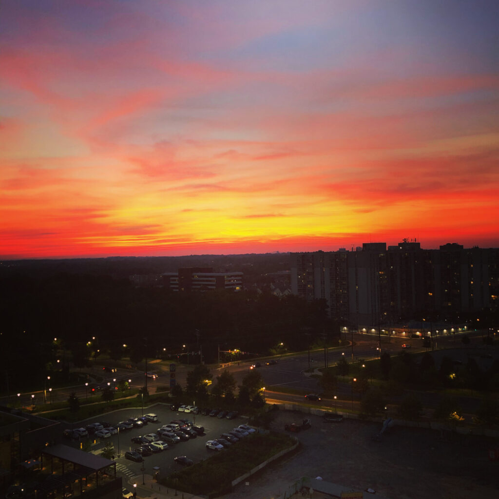 It’s a warm July evening and I walk out onto the 16th floor balcony. The view of the sunset is mesmerizing and I paint a picture in the deep tones to suit my mood. Beneath me the hustle and bustle of town life becomes hard to zone out. And then I realize I’m right there, in between the two. I’m in between two lives, one I have to leave behind and the one I’m about to step into.